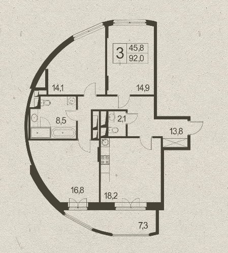 3-к 82.92 м2 7.12 млн. o